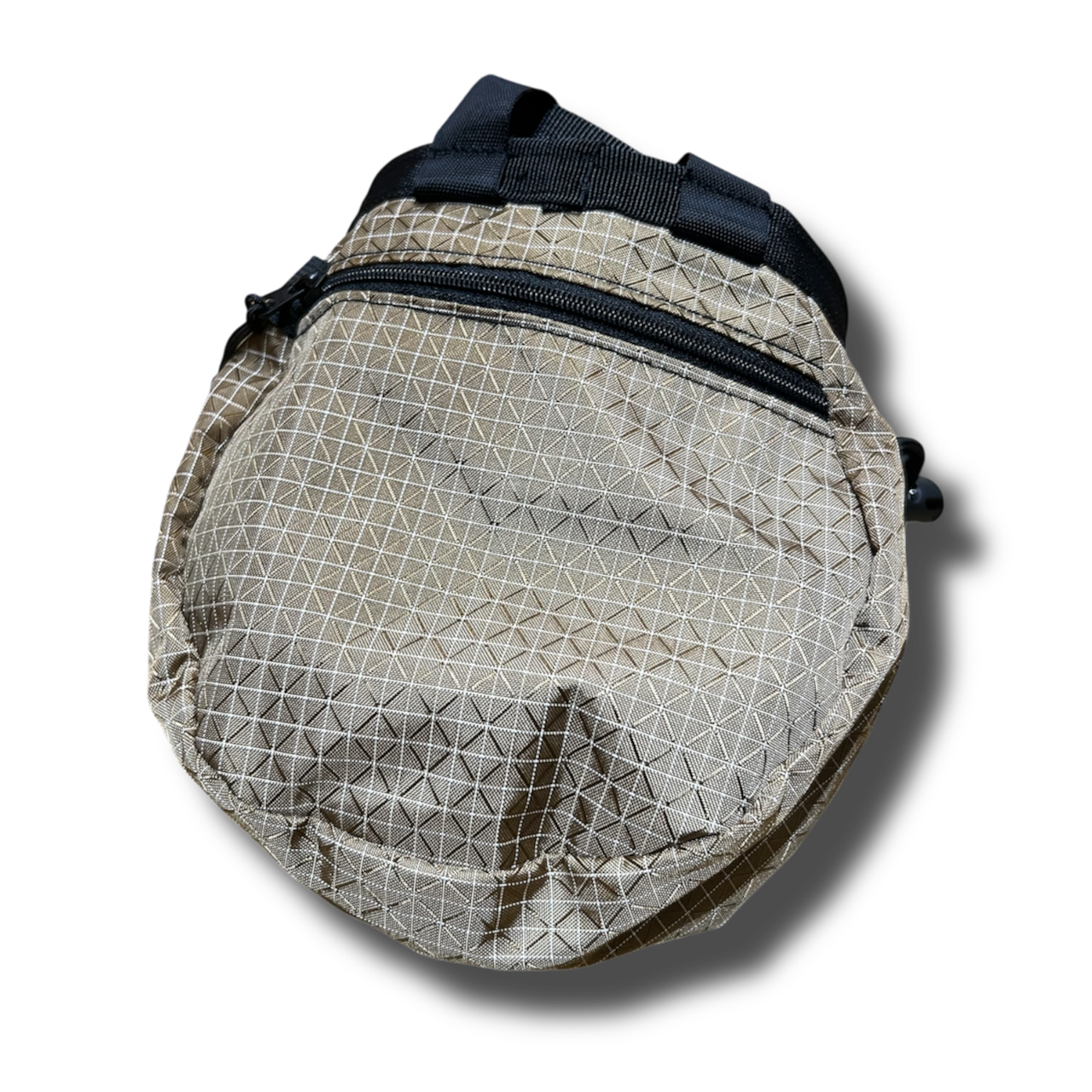 リップストップナイロンを使用したころんとした腰付けチョークバッグ。